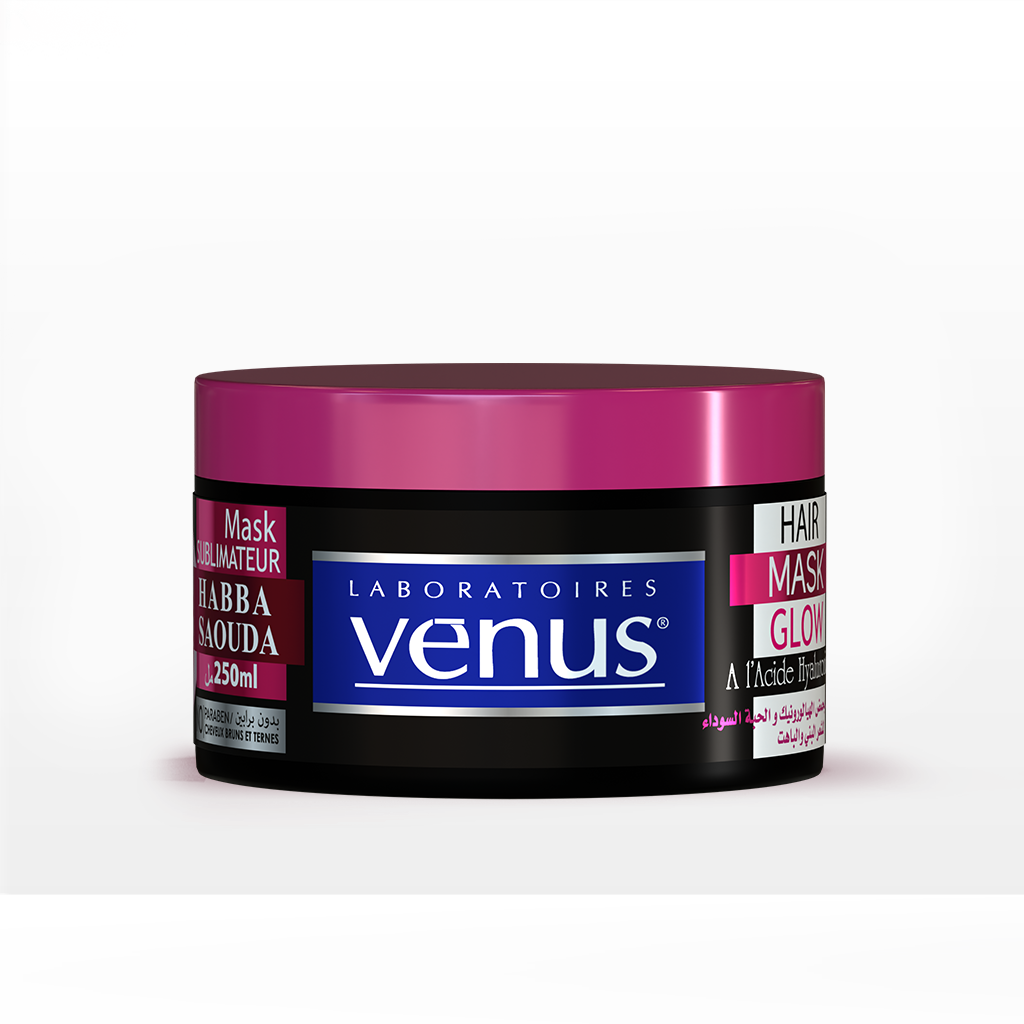 Transformez vos cheveux avec HAIR GLOW, le masque sublimateur des Laboratoires Venus. Sa formule unique à l’Habba Saouda et à l’Acide Hyaluronique redonne vie aux cheveux bruns et ternes. En seulement 3 minutes, vos cheveux seront 10x plus doux et 3x plus brillants.